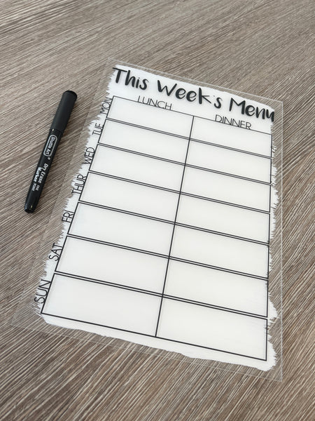 This Week's Menu Food Meal Planner Painted A4 Clear Acrylic Wipeable Sign With Drywipe Pen